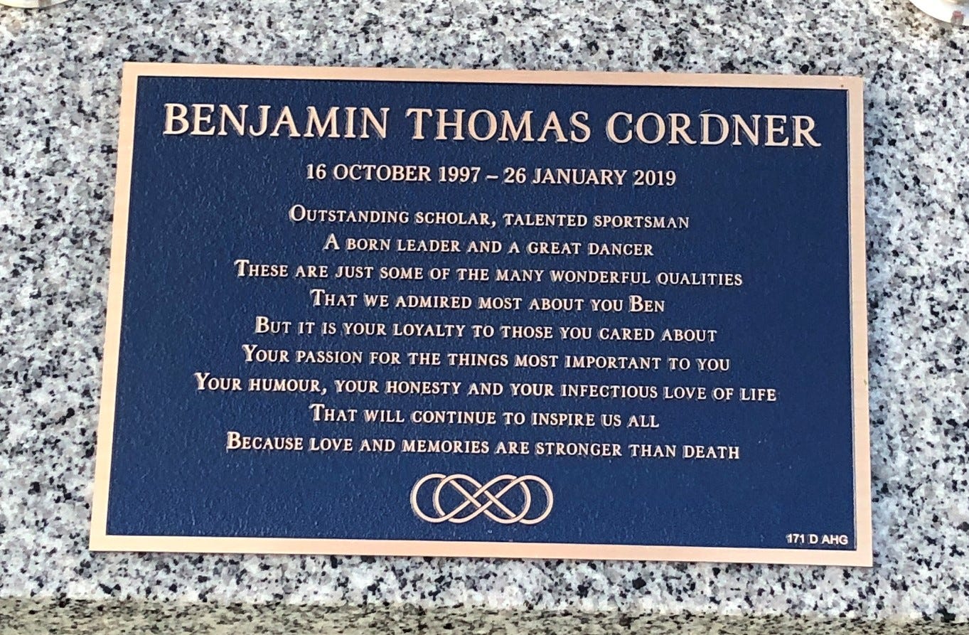 The day’s final third proved a hoot and a half as we caught up with a couple of young friends who happened to be in this part of the world at the same time as we, and who were thankfully happy enough to share a bevvy, or two, and a hearty meal, with a couple of old coots. That couple, Bill and Paige [who have more recently become engaged to be married in April 2026], are both part of an extraordinary support network that emerged for our family during the early part of 2019, following the tragic accidental death of our younger son, Ben. Known endearingly as a Bunch of Smartarses, this group, comprising two of Ben’s oldest and closest friends (Bill & Michael), and their families, let us know in no uncertain terms from a very early stage that we would never need to deal with Ben’s loss on our own. Their company had always been a safe space for us all, but never moreso than in the months and years following the darkest period of our lives - a space for unapologetic tears and warm hugs, for nostalgic tales and unself-conscious laughter, for honesty, for love, and for unashamed admiration of the enigmatic and unforgettable Ben. Our gratitude for the loyalty and support extended by the Smartarses knows no bounds.